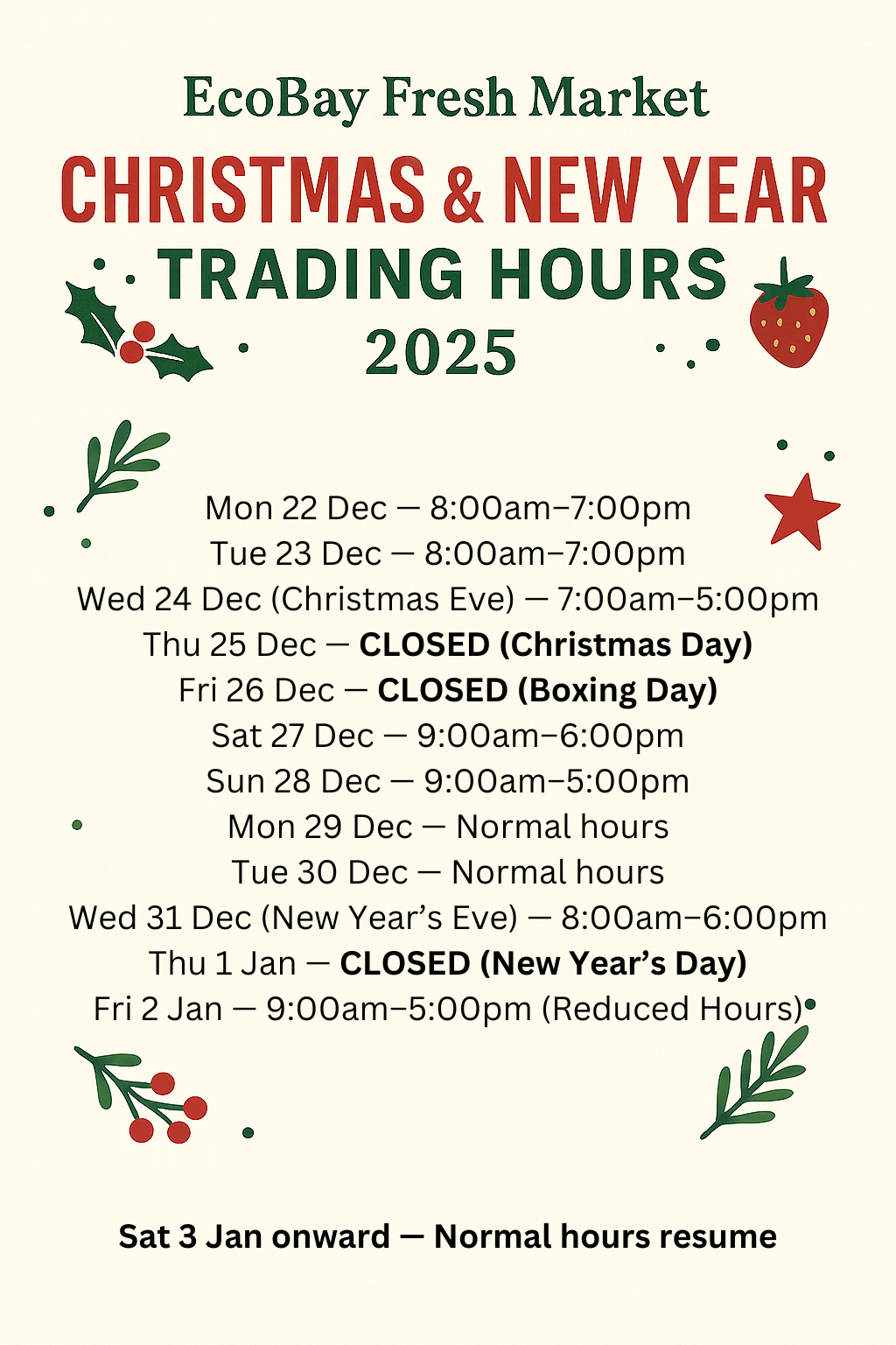 Here are our Christmas & New Year hours — we’re here to help make your holidays fresh, easy, and delicious! 🎅🏼🥝